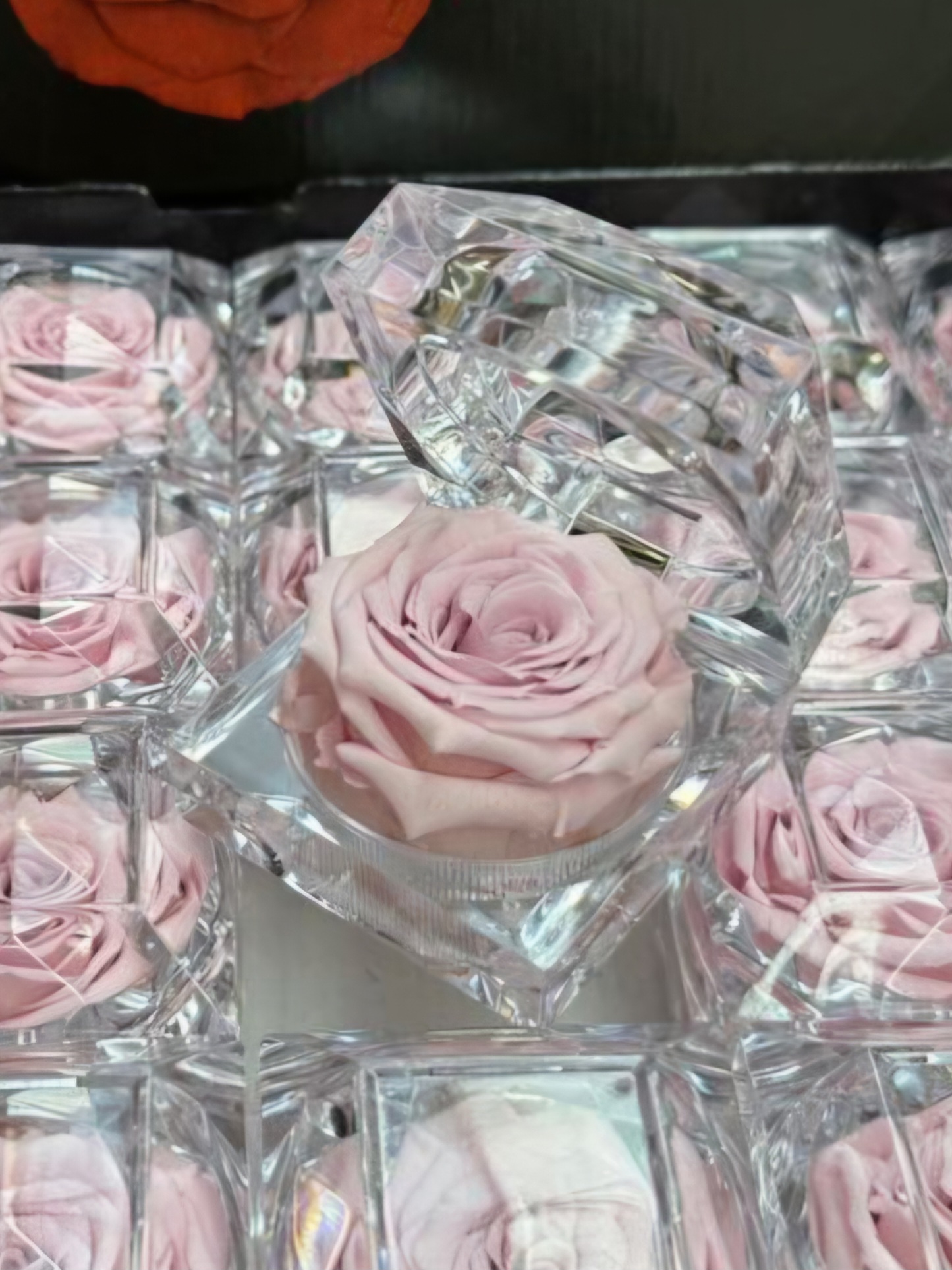 PremiumĀ  Fresh Roses expertly preserved to last forever. Elegantly presented in a rose box and scented. The small pink roses are presented in a clear gift box.   Keep out of direct sunlight and keep dry to make them last